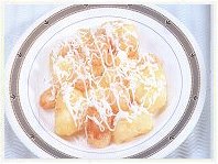 二、脆酥粉加水攪拌均勻,將鳳梨、蝦仁,沾脆酥粉油炸成金黃