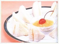 三、土司去邊抹上果醬,對切擺盤即成。