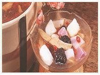 三、將2之材料加入挖空紅山藥中,入鍋蒸熟取出排盤。