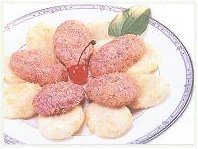 二、將1壓成圓形沾面包屑入油鍋中炸成金黃色即可。